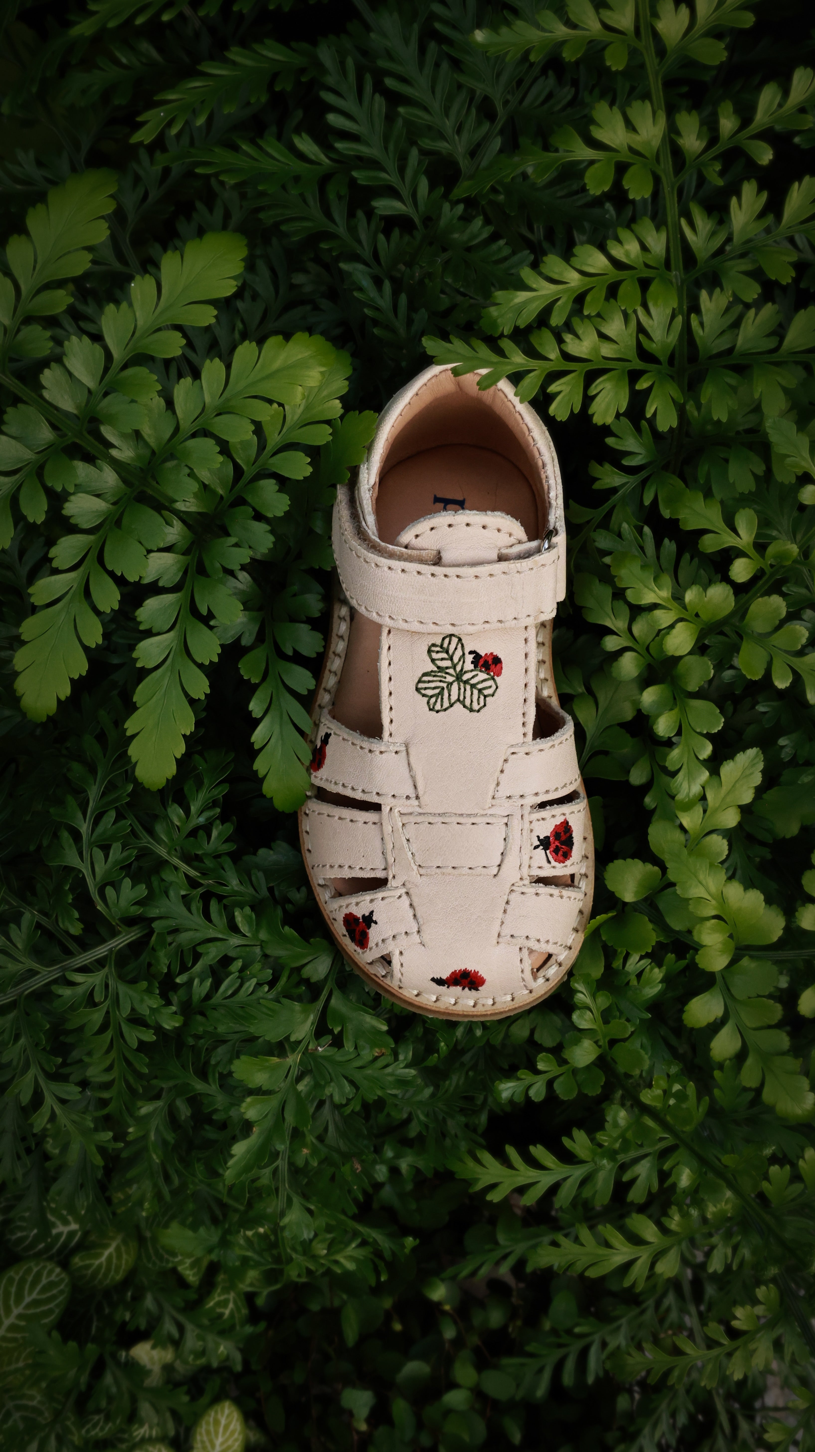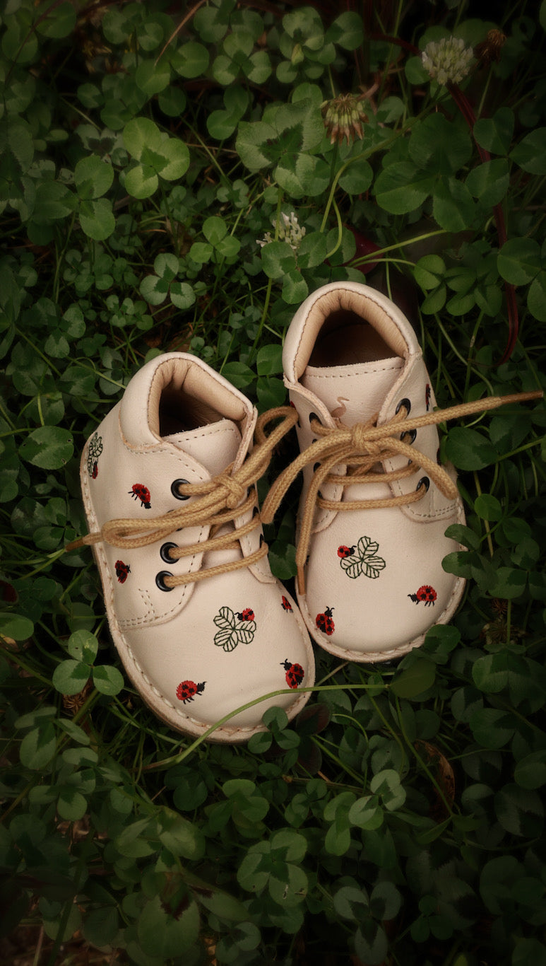 We have made some Little new friends! Meet the Ladybugs Range! Gorgeous, cute and loved by all children. They are scattered across our beautiful hand crafted Shoes, accompanied with gentle clover leaves, creating a resting place for one tiny bug.